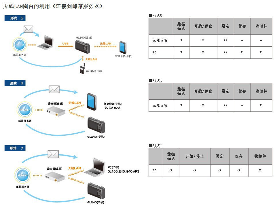 midi LOGGER GL240通过装载选件的GL无线LAN (B-568)模块 后,可以和其它机器进行无线通信,